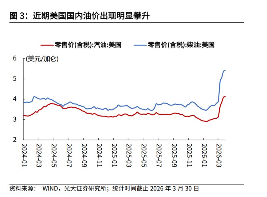 与此同时,能源冲击迅速升温,全美汽油均价升至4.02美元/加仑,部分地区突破5美元,加州更高达5.88美元。