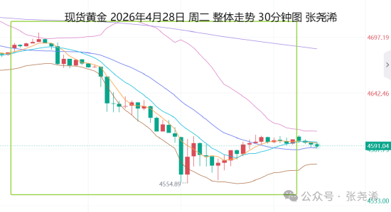 4月29日:上交易日周二(4月28日):国际黄金回落收跌,仍受美伊局势影响,伊朗表示不认为战争已经结束,而继续向下远离100日均线,振幅相对前几日明显加大,空头力量也有所增强,虽然如期在触及144日均线支撑位置止跌反弹,但如不能重回100日均线上方,则后市仍有再度回撤至200日均线目标4300关口附近的预期。