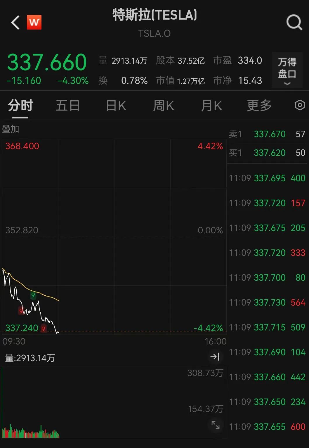 今日美股盘中,特斯拉跌超4%,日前摩根大通大幅唱空其股价警告恐暴跌60%。