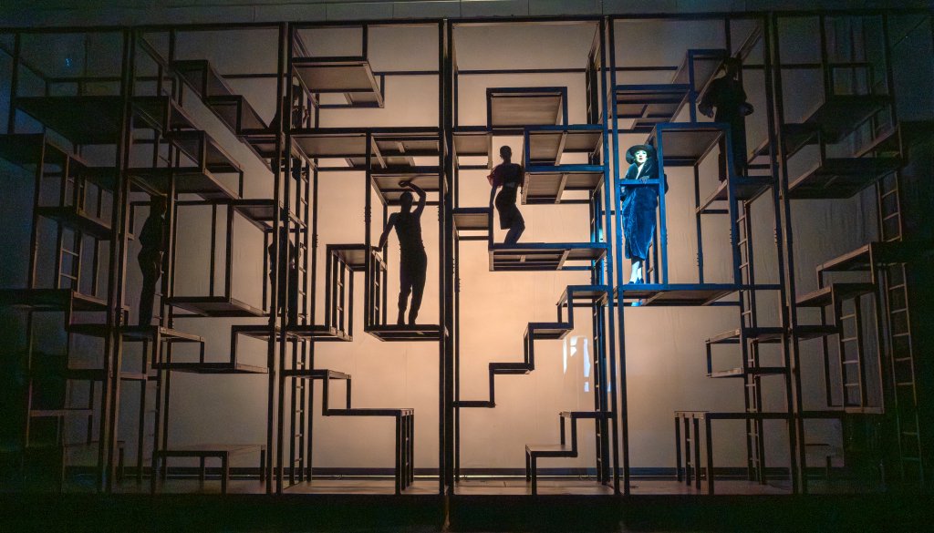 在这个版本中,他和舞美设计师丽贝卡·林斯特(RebeccaRingst)一起,用冷硬的金属把舞台搭建成像迷宫、格子间、脚手架的大型空间,展现故事发生环境中的腐烂气息。演员们在脚手架上下攀爬,直观展现了了生存而必须不断往上爬。与此同时,为了“间离效果”,科斯基提醒演员可以随时打破第四面墙,演员们用滑稽剧的形式演绎,快语速和轻松幽默的氛围,展现这部作品。