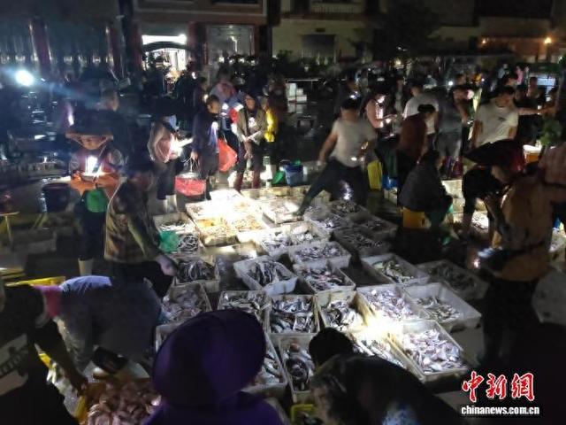 每日凌晨3时至5时许,在广东湛江市遂溪县千年古港——江洪渔港码头边的“天光鱼市”,人声鼎沸,摊主的吆喝声此起彼伏,来自各地的客商们为了“抢”到新鲜而又便宜的海产品,一边手持手电筒精心挑选,一边跟摊主讨价还价,场面蔚为壮观。图为刚刚上岸的渔获。中新社记者 梁盛 摄