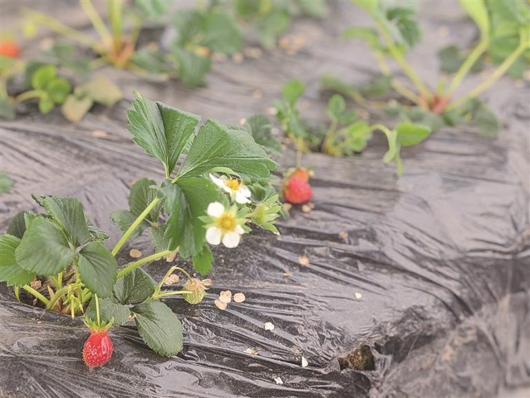 草莓和蒜苗做了“好邻居”