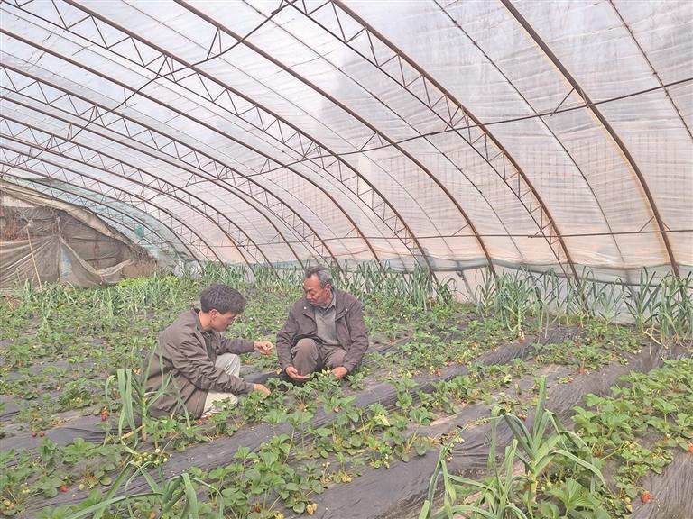 “别小瞧这小小的蒜苗,它可有大作用!”种植户宗红振拔起一棵蒜苗,向记者揭秘其中的生态智慧:“蒜苗在生长过程中会释放出大蒜素,就像一个天然的‘病虫害驱赶器’,蚜虫和红蜘蛛闻到这股味儿就会远远躲开,灰霉病和白粉病也被有效抑制。再加上蒜苗根系浅,不跟草莓抢肥料,叶子直立向上长,也不遮挡阳光。它俩搭配,简直是天作之合!”