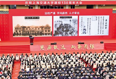4月8日,上海交通大学校长丁奎岭作主题报告。4月8日,“庆祝上海交通大学建校130周年大会”在上海交通大学闵行校区霍英东体育中心举行。1896年,交通大学的前身南洋公学诞生在上海黄浦江畔,于民族危难中担起“兴学强国”的使命。130年来,从实业救国到科教兴国,从人才储育到创新攻坚,学校始终将自身发展与国家命运、民族复兴、社会进步紧密相连。新华社记者 刘颖 摄