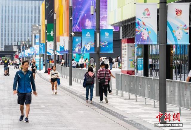 11月1日,香港新晋地标启德体育园的体育大道沿途遍布第十五届全国运动会(简称“十五运会”)装饰宣传元素,静待本届全运会于11月9日正式开幕。 中新社记者 侯宇 摄