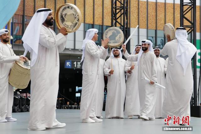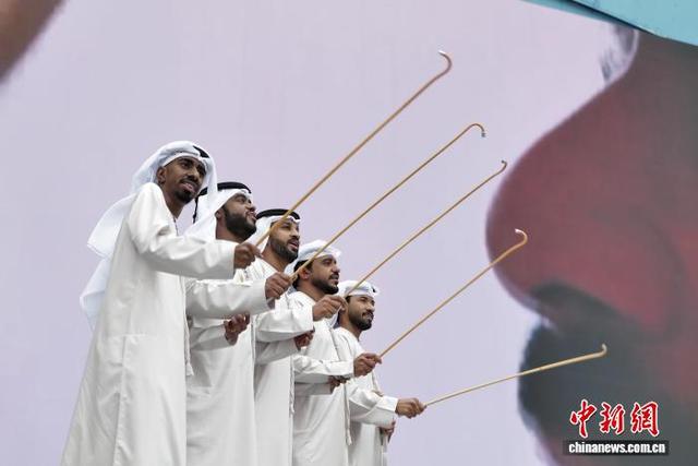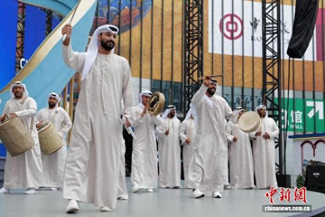11月9日,来自阿联酋的演员在第八届中国国际进口博览会人文交流活动中外人文演艺区表演舞蹈《阿亚拉舞》。中国国际进口博览会不仅是全球商品和服务的交易平台,更是中外文化和理念交流的盛会。中新社记者 殷立勤 摄