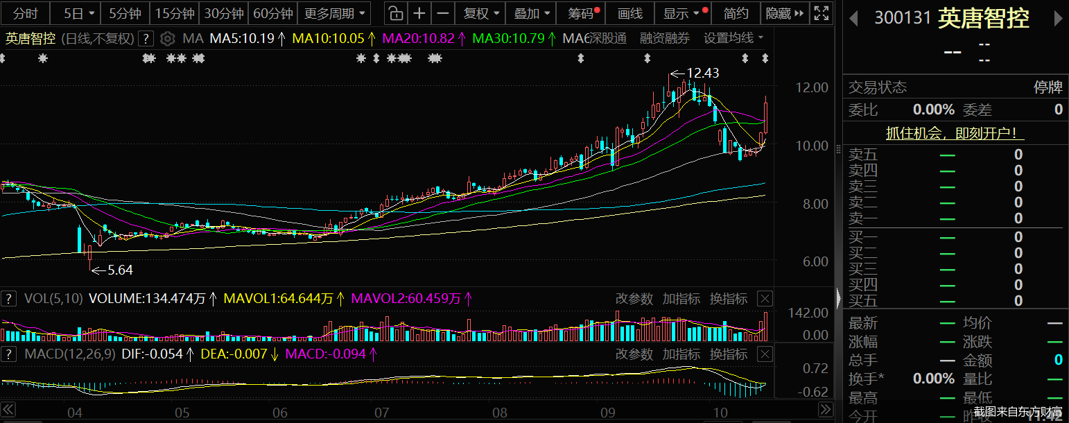 英唐智控已于10月27日起停牌。然而,公司股票停牌前两个交易日,即10月23日、24日,英唐智控股价接连放量大涨,其中10月24日公司股价收涨9.91%,报11.42元/股。