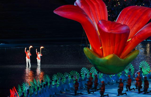 广东奥体中心构筑了同心圆的独特空间,开幕式文体展演的主题定为“圆梦未来”,三个“YUAN”串联起整场演出。
