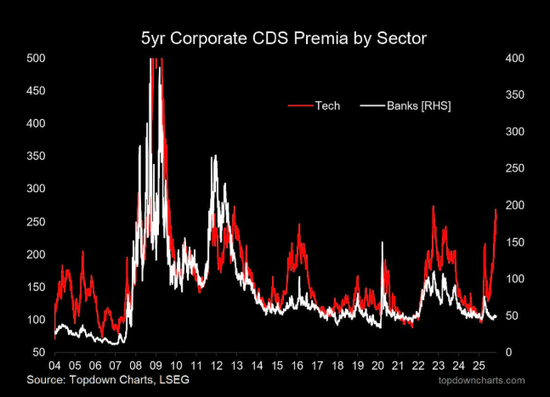 最后,信贷风险指标出现分化。科技行业的信贷风险急剧上升,而银行业相对平静。尽管存在特定原因,且不能简单套用“信贷总是领先”的规律,但这一现象仍需密切关注。