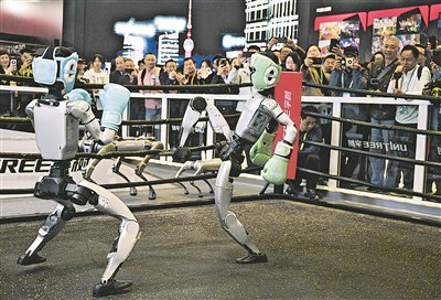 在宇树科技展台,人形机器人施展着拳打脚踢的真功夫,行云流水的动作展现了在运动控制领域的新突破;在川崎重工展台,机器人同时对战两位棋手,用视觉检测棋盘、通过AI算法判定胜负;具备安保防暴功能的人形机器人,全球首发的家庭陪伴机器人……从技术到应用的精彩展示,让人们仿佛置身机器人的“未来世界”。
