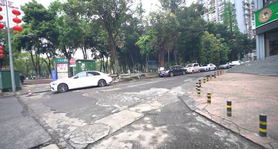 位于中心城区阳光广场旁的文昌宫南巷,紧邻居民区和美食集中区,日常车流量和人流量较大。长期使用导致该路段出现路面坑洼、井盖破损等问题。
