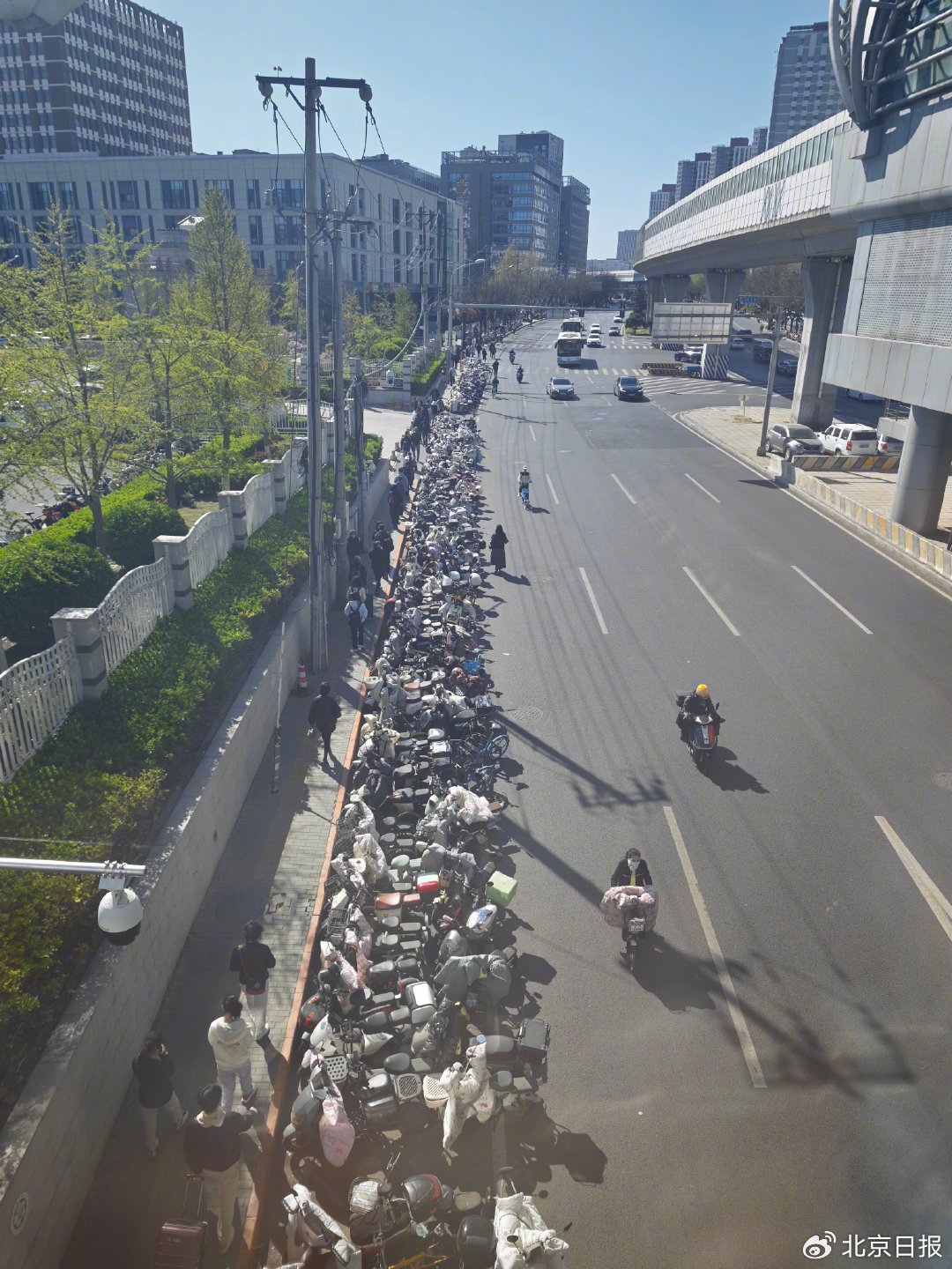 在地铁立水桥南站外,非机动车“长龙”占道绵延二百米。导致公交车难进站,通行的非机动车被“逼”上了机动车道。现场保安在劝,单车企业在清,为何乱停的非机动车仍陷入了“想管管不了,清了清不完”的两难?