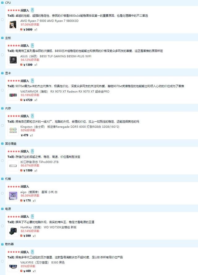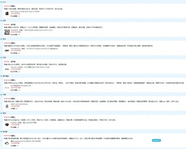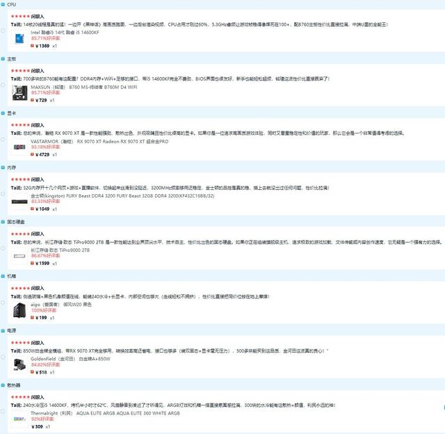 点评:这套配置是纯粹为游戏玩家打造的利器,X3D处理器与9070 XT的组合在游戏性能上甚至能挑战更高价位的配置。