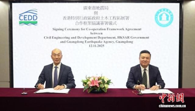 中新网香港11月12日电 香港特区政府土木工程拓展署与广东省地震局12日签署为期五年的合作框架协议,进一步推动双方在地震和地质灾害风险管理技术方面的合作。