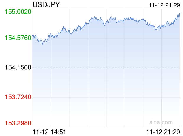 新浪外汇消息2025年11月12日,截至21时29分,外汇市场上汇率突破1美元兑换154.9400日元。涨幅为0.5125%