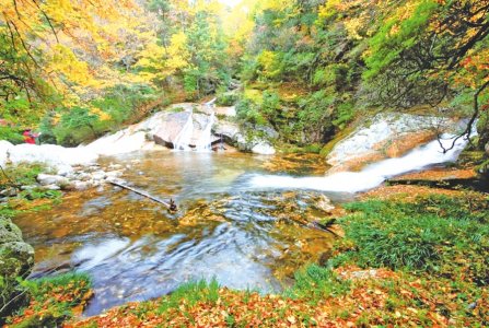 在川陕交界处的巴中市南江县北部,坐落着一片面积达680平方公里的红叶群落。这里,就是光雾山旅游景区。