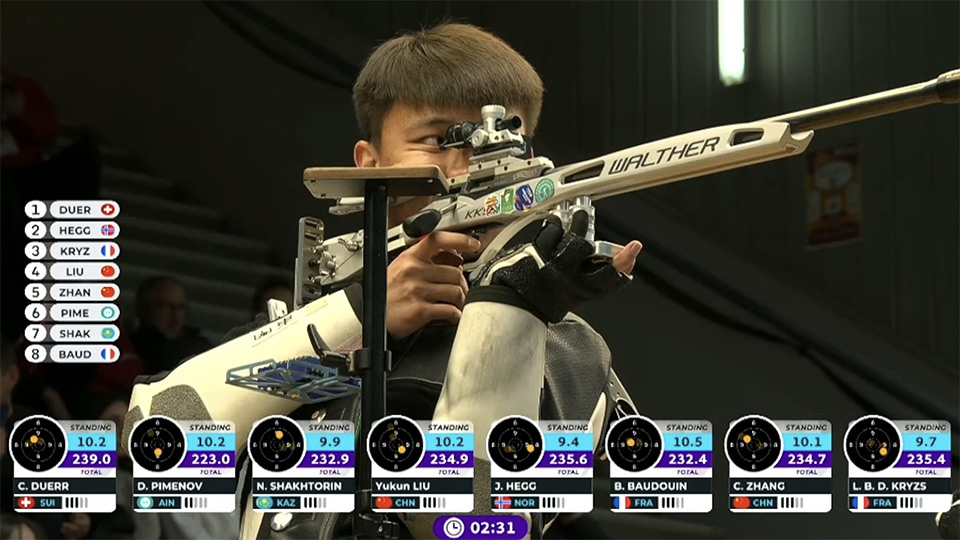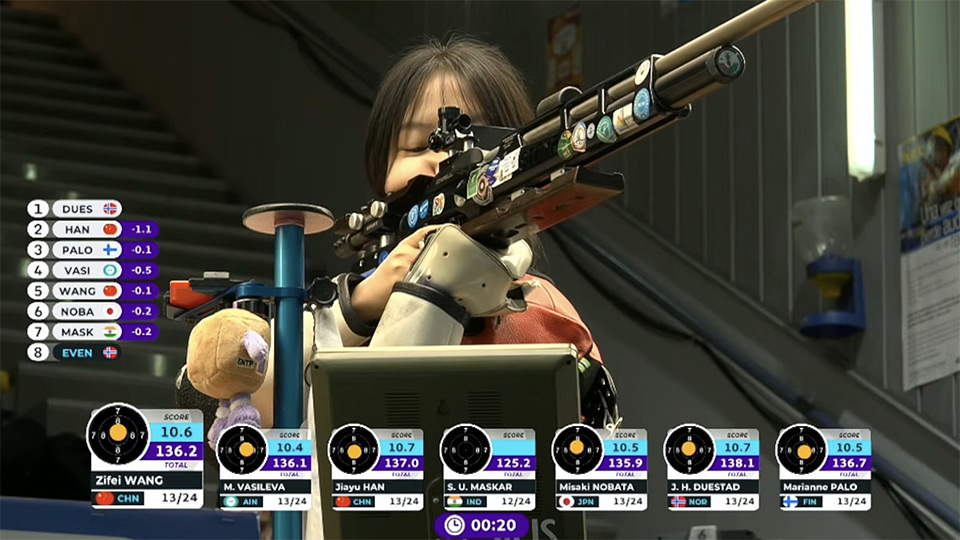 此前完成的比赛中,中国队在10米气步枪混合团体、男子10米气手枪、女子25米手枪、男子10米气步枪、女子10米气手枪、男子25米手枪速射6个项目均摘得金牌。