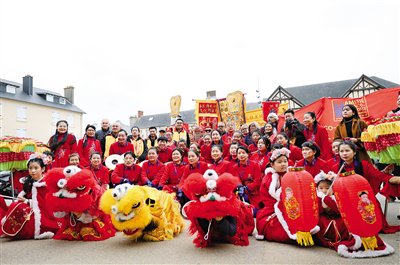 4月11日,巡游队伍在法国诺曼底大区芒什省阿贡-库坦维尔合影。为期近三周的2026年诺曼底中法文化节11日在法国诺曼底大区芒什省落下帷幕。当天上午,一场妈祖巡游在滨海小城阿贡-库坦维尔举行,成为本届文化节一大亮点。 新华社记者 邬惠我 摄