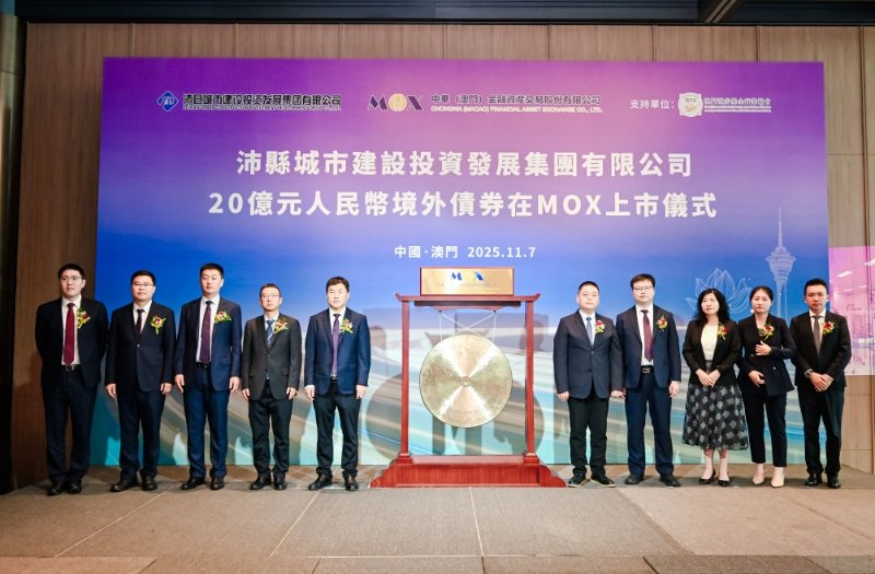 11月7日,沛县城市建设投资发展集团有限公司(以下简称沛县城投)20亿元人民币境外债券在中华(澳门)金融资产交易股份有限公司(以下简称MOX)上市仪式成功举行,本次上市的债券为3年期固定利率人民币债券,息票率3.70%,是沛县城投首次亮相国际债券市场,也是江苏省、澳门两地金融市场深度联动的又一新成果。