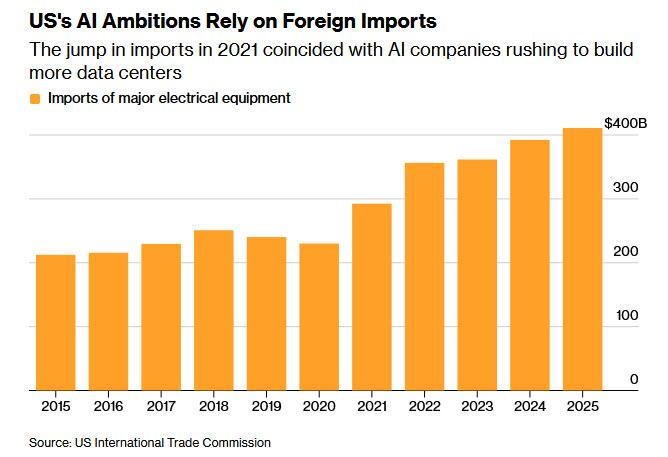 据报道,美国国内制造产能无法跟上需求增速,建设方不得不大量依赖进口。GE Vernova电气化部门首席执行官Philippe Piron指出: