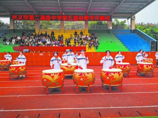 兴义二中始建于上世纪60年代,学校文脉悠远。在半个多世纪的发展中,学校一直重视体育对人才培养的积极作用,特别是2022年6月被贵州省教育厅批准为“贵州省民族地区基础教育质量提升行动计划”项目学校后,更是把体育的育人功能发挥到极致。“每天锻炼一小时”“每年举办体育节”成了定律;学校开齐开足体育课、开展“大课间”、开放羽毛球、篮球、乒乓球等场馆,组织体育社团活动,拓展锻炼的时间与空间,让“锻炼身体”的行动,内化为生活习惯,“五育并举”的育人理念,在学校得到了深入践行。