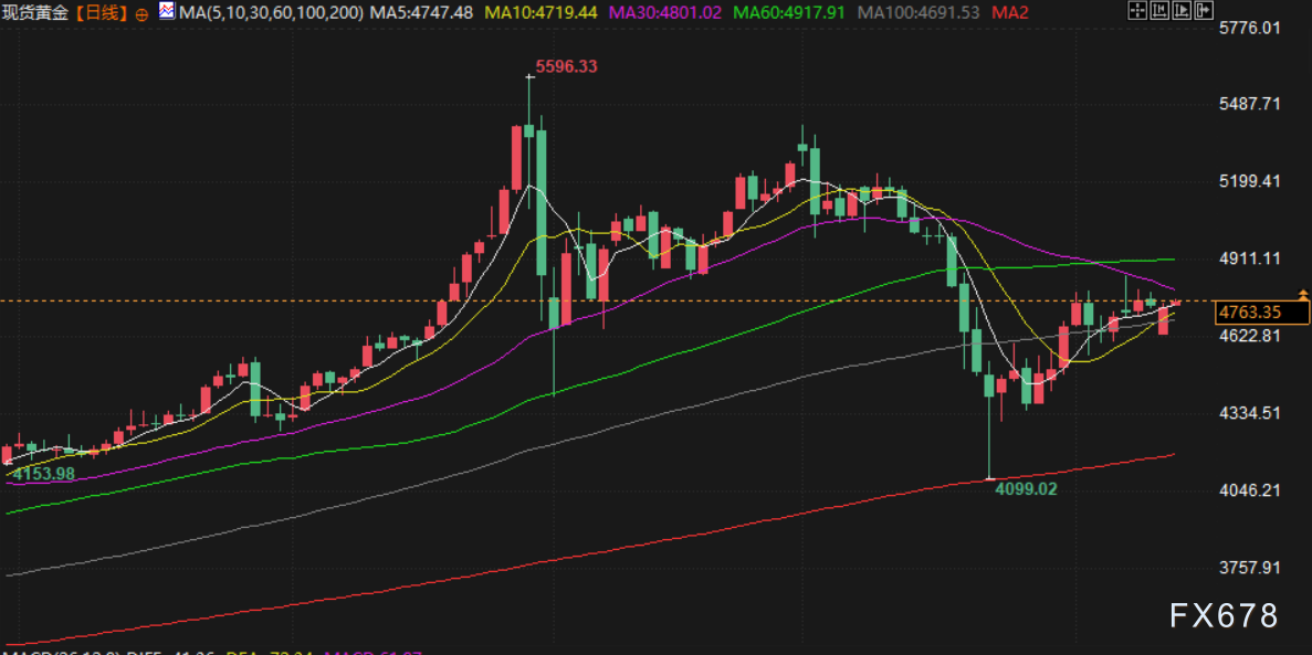 周一小幅下跌,受美元走强及美伊和平谈判周末破裂后通胀担忧重燃的压力影响,市场对未来降息前景的预期蒙上阴影;现货黄金跌0.3%至每盎司4734.50美元,盘中触及4月7日以来最低,美国期金收跌0.4%至4767.40美元,美元走高使得贵金属对持有其他货币的投资者更昂贵。
