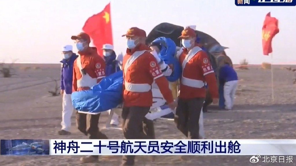 11月14日16时40分,神舟二十号航天员乘组乘坐神舟二十一号飞船返回东风着陆场,航天员陈冬、陈中瑞、王杰状态良好。