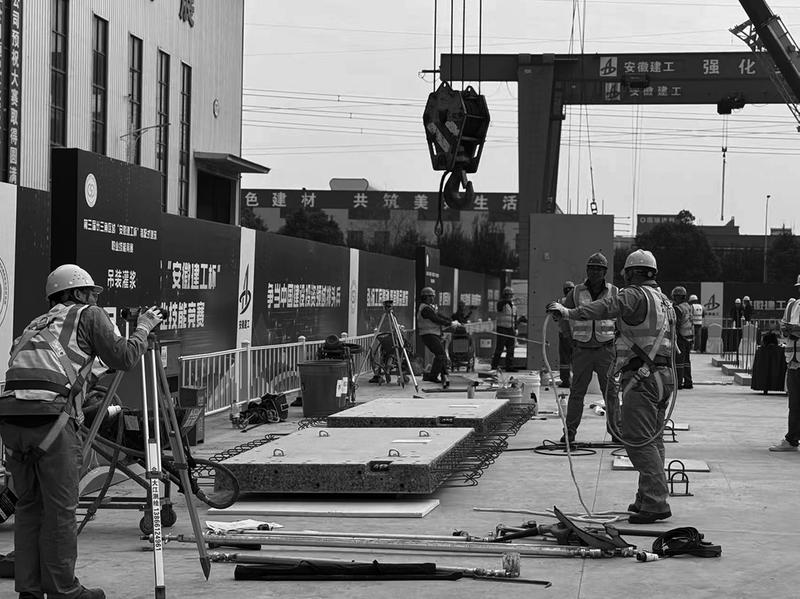 本报讯 吊装、灌浆……在预制内墙板吊装现场,几名装配式建筑施工员正在协作“搭积木”。11月13日,第三届长三角区域“杯”装配式建筑职业技能竞赛在合肥市开幕。来自上海、江苏、浙江、安徽三省一市的99支代表队、347名技能高手齐聚一堂,展开一场高水平技能对决。