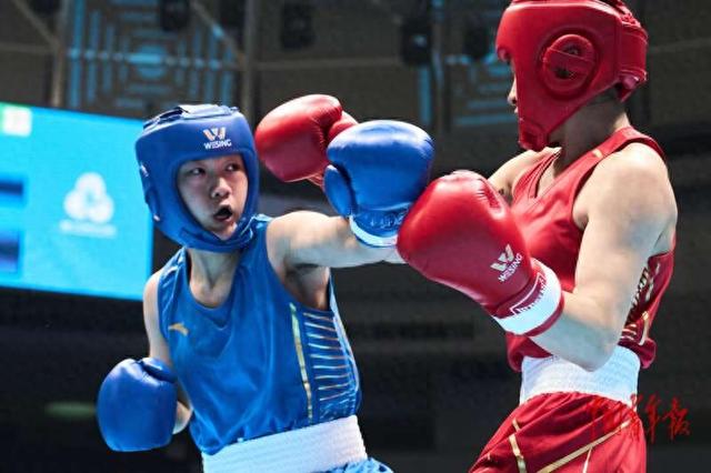 11月14日,广东深圳,宝安体育中心体育馆,十五运会拳击女子52-54公斤级决赛,内蒙古队赵轩出场。中青报·中青网记者 田嘉硕/摄
