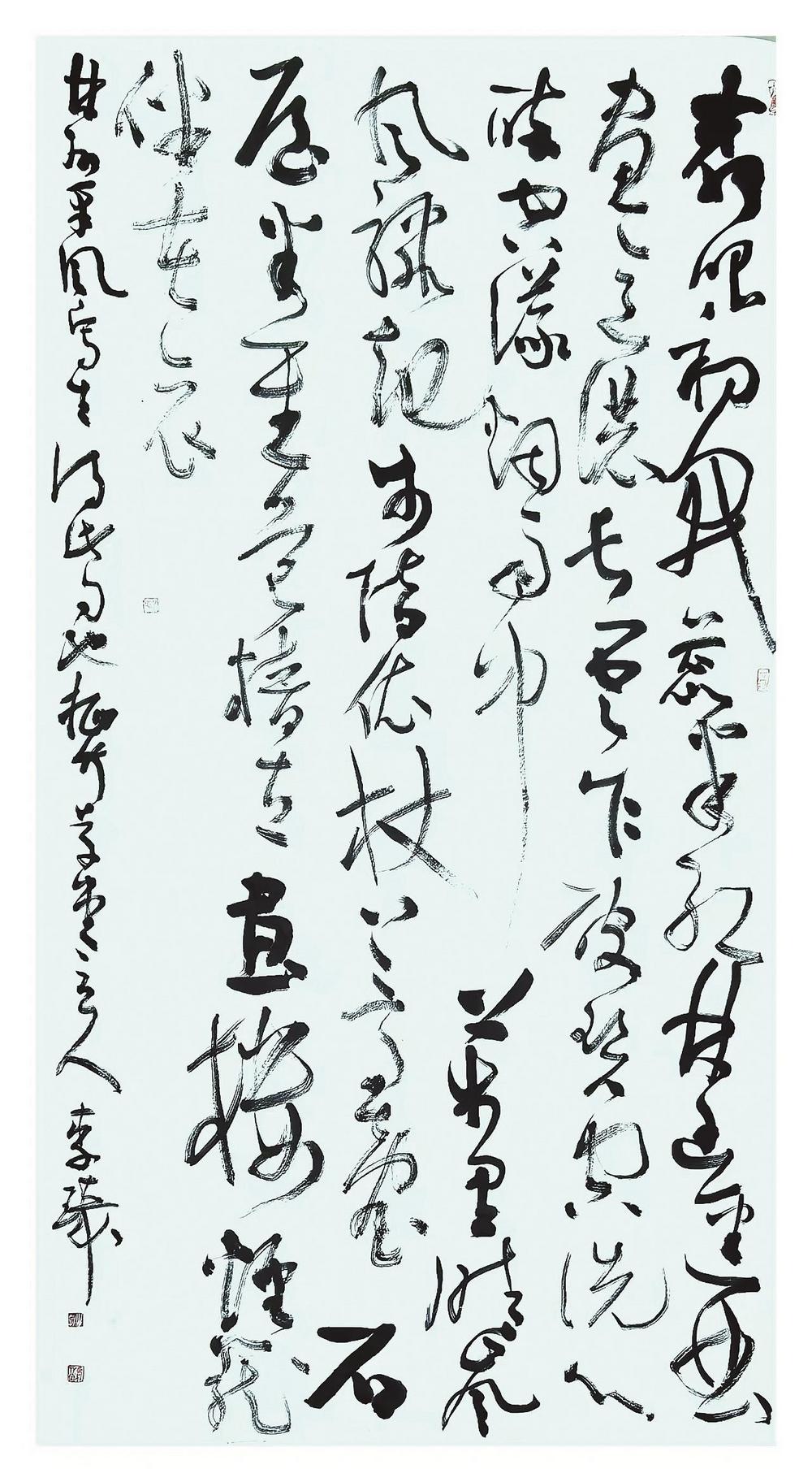 本次展览展出140余幅作品。李琦书写的是两首原创诗作,其草书作品笔力遒劲,取法有度,风神独具,每一字都饱含深情;绘画作品则生动描绘太行新貌、还原历史场景、勾勒了英雄群像,弘扬太行精神。