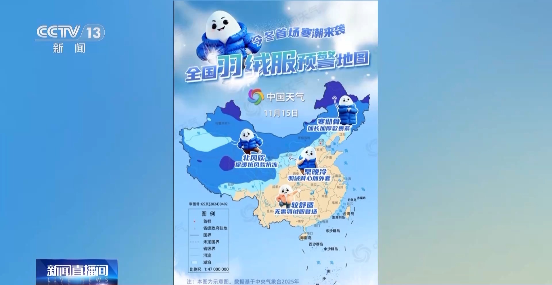 明天起,中东部地区将进入主要降温时段,日平均或最低气温普遍下降6℃至10℃,黑龙江、内蒙古、陕西、重庆等多地气温还将创今年下半年以来新低。中央气象台今天继续发布寒潮蓝色和大风蓝色预警。今天,寒潮将主要影响甘肃、宁夏、内蒙古中西部等地,明天起至18日,寒潮主体东移南下,将影响中东部大部地区,带来显著的大风、降温天气。预计中东部地区气温将普遍下降6℃至10℃,内蒙古、辽宁、陕西、湖北等地部分地区降温12℃至14℃,局地降温可超14℃,寒意明显加剧。寒潮“跑得快”17日起影响南方大部17日开始,降温范围将迅速南扩至南方大部。降温过后,20℃以上区域将所剩无几,最高气温10℃线将抵达安徽、江苏、河南等地。值得注意的是,本轮寒潮属于“跑得快”的类型,大风降温从京津冀到广东将只有一天多的时间,南方的朋友也要抓紧时间做好保暖准备。浙赣湘粤桂等地有大风历史同期罕见从天气形势来看,本次冷空气南下速度快,即使到了南方,也依然保留了相对强的实力。因此,不仅北方有大风,浙江、江西、湖南、广东、广西部分地区也有历史同期罕见的大风天气,阵风强度值得高度警惕。黑龙江内蒙古等地降雪增多增强除了大风和降温,雨雪方面,今明两天,我国大部地区降水较少,雨雪主要集中在黑龙江、吉林、辽宁以及内蒙古、四川等地。随着冷空气东移,内蒙古东部、黑龙江、吉林东部一带降雪将增多、增强。同时,青藏高原东部以及西南地区一带也有较大范围的雨雪天气,相关地区需注意防范道路结冰对交通的影响。寒潮:冷空气的“大迁徙”一提到寒潮,大家就会联想到气温骤降或是寒风刺骨,这个听起来就让人瑟瑟发抖的天气现象,其实是一场大气中冷暖气团的激烈交锋。从气象视角来看,寒潮的本质是极地或高纬度地区的冷空气大规模向南“迁徙”的过程。寒潮源于极地涡旋异常活动在北极地区,常年存在一个强大的冷性低压系统——极地涡旋。当这个涡旋变得不稳定时,就会分裂出冷空气团,并向中低纬度地区“迁徙”。这些冷空气团在气象学上也被称为“冷高压”,当冷高压势力足够强大时,就会推动冷空气大举南下,形成寒潮天气。寒潮是冷空气活动中强度最大的一种气象学上对寒潮有严格的定义标准,24小时内气温下降8℃以上且最低气温降至4℃以下;或48小时内连续下降10℃以上且最低气温在4℃以下;又或者72小时内连续下降12℃以上且最低气温在4℃以下才可称为寒潮。可见,并不是每一次冷空气南下都称为寒潮,寒潮是冷空气活动中强度最大的一种。寒潮是秋冬春之交的“常客”寒潮的“登场时间”也有一定规律,主要集中在11月至次年4月,尤其在秋末、冬初和冬末、春初更为活跃,隆冬时节反而相对少见。除了剧烈降温,寒潮出场往往还伴随大风,以及雨、雪、雨凇、霜冻等降水或冰冻现象,给交通、农业和人们生活带来多方面影响。全国羽绒服预警地图出炉下半年首场寒潮天气将影响我国大部地区,部分地区累计降温幅度可超14℃,多地大风劲吹,风寒效应明显。哪些地方需要立刻穿上羽绒服,来看气象部门发布的全国羽绒服预警地图。寒潮发力我国大部气温将创下半年来新低未来三天,这股实力强劲的寒潮将持续影响我国大部地区。其中16日到17日,中东部会陆续进入降温“主力时段”,东北地区、京津冀部分区域降温幅度可达10到12℃。全国近30个省会、首府、直辖市的气温,都将刷新今年下半年以来的最低纪录,羽绒服也将成为不少人出行的“标配”。今明两天新疆内蒙古需穿加长加厚羽绒服具体来看,今明两天,寒潮的影响区域主要集中在新疆以及内蒙古等地,这些地区的最高气温都在零度之下,当地民众外出需裹紧加长加厚款羽绒服。而河北、甘肃、青海等地区最高气温也都仅有个位数,部分地区大风相伴,保暖抗风款羽绒服是更合适的选择。后天起寒潮东移京津冀等多地需“羽绒服护体”到了后天,随着寒潮主体继续东移南下。东北大部、宁夏、陕西、山西等地的最高气温会降至个位数,京津冀地区北风劲吹,保暖抗风款羽绒服同样不能少。本轮寒潮天气很大的一个特点是早晚寒意突出,所以公众外出可以采用“洋葱式穿搭”。冬季穿搭别陷入“越厚越暖”误区中国气象局公共气象服务中心首席专家 柳艳香:穿得越厚越暖和,是冬季穿搭的常见误区。保暖的核心在于构建稳定的空气保温层。人体散发的热量会加热衣物间的空气,形成天然保暖屏障,但若层数过多或过紧,反而会破坏这层屏障引发热量流失。“三明治穿衣法”正是基于这一原理,用三层结构实现保暖与灵活的平衡。南岭以南暖意足羽绒服暂可“压箱底”值得一提的是,寒潮在翻越南岭之后,降温实力大幅缩减,未来几天,广东、广西、福建等地最高气温仍将维持在25℃上下,体感舒适,长袖加外套就足够,羽绒服将继续安心“压箱底”。