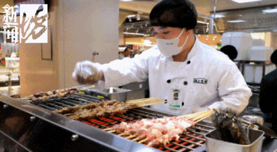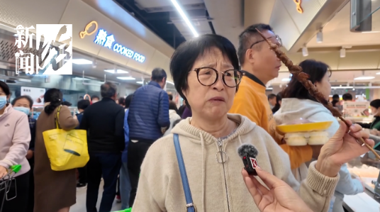 这家商超的一大特色,是现制现售的产品达到800款。从出锅的第一口油条,吃到冒油的第一个生煎包;谁能想到,一家商超里还有羊肉串烧烤摊,差不多20厘米长,10块钱,难怪一直要排队。体验型、烟火气,正是大家喜欢的感觉。