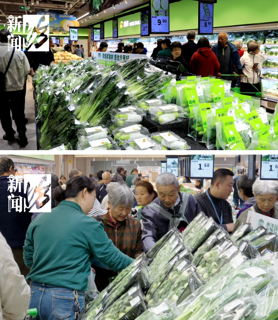 这个绿叶菜摊位一直人气足,1块6毛8一斤的小青菜,7点开门两个多小时就卖空了,对价格敏感的阿姨爷叔纷纷表示,和外面的菜场相差一块钱。店员表示“400公斤已经卖光,补货要到下午四点左右。”