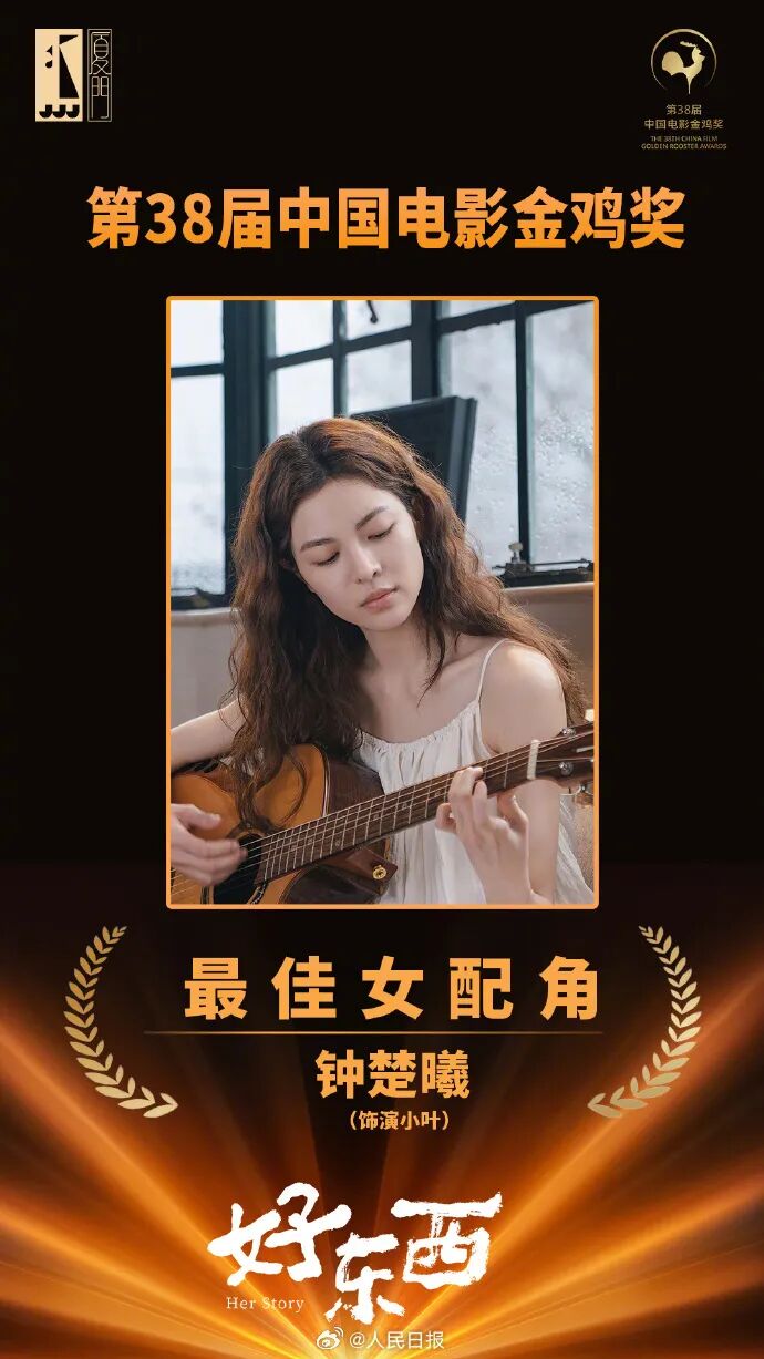 今晚,第38届金鸡奖颁奖典礼暨2025年中国金鸡百花电影节闭幕式举行,钟楚曦(《好东西》饰演小叶)获最佳女配角奖,袁富华(《水饺皇后》饰演糖水伯)获最佳男配角奖。