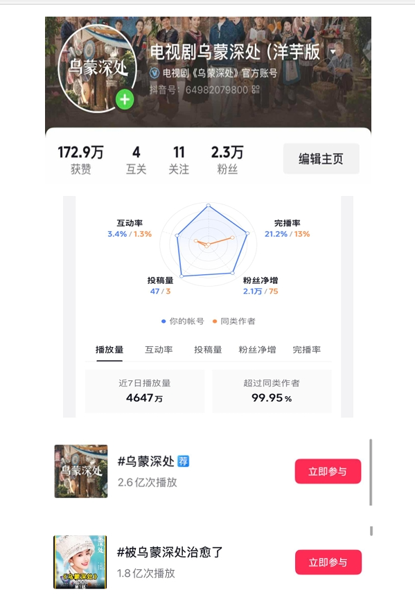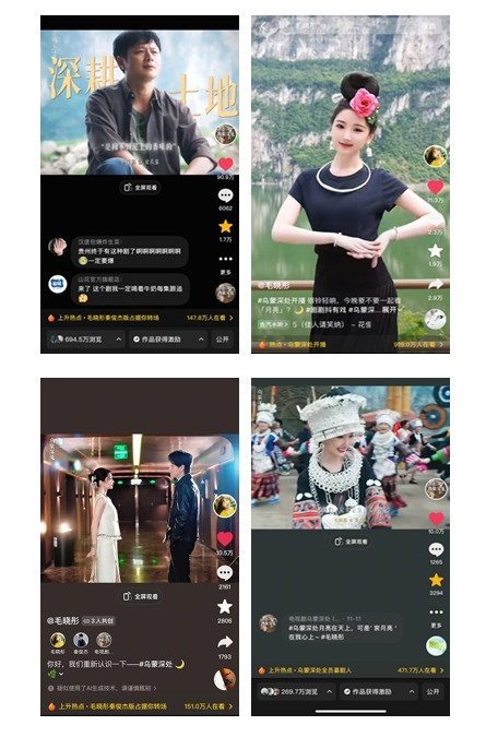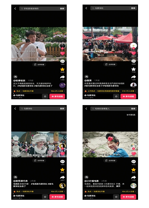 在抖音,“你永远可以相信贵州的风景”“舌尖上的《乌蒙深处》”“苗族妆造图鉴”等内容撬动了用户对于贵州文化的感知,而“返乡创业的年轻人”“乌蒙三棵草”“搞笑父子”等轻喜剧内容则撬动了泛娱乐受众追剧。同时小红书、豆瓣等多个平台发力,多维度推动剧集立意、情感层级与社会影响力全面提升。