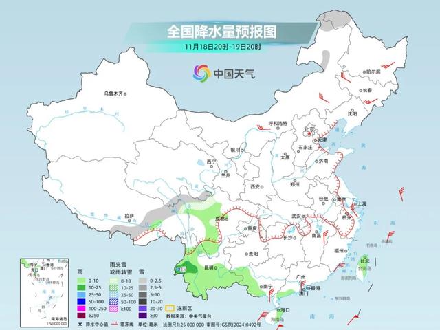后天,西南到江南、江淮一带的降水将基本结束,仅华南西部仍有弱阴雨天气。从19日开始,除西藏、四川、云南部分地区还有弱雨雪天气外,全国大部分地区将进入雨雪稀少时段。