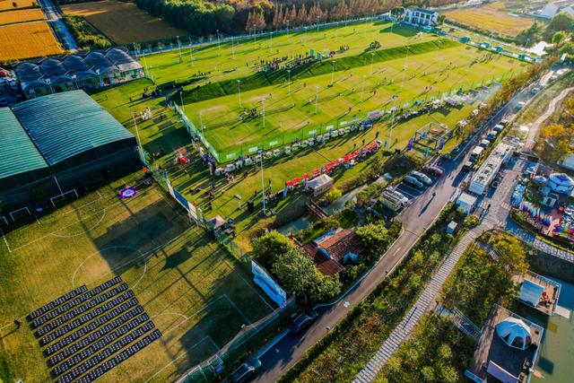 秋日的奉贤南桥镇江海村,稻浪翻金,芦花摇曳。田间地座落着几座银白色的“魔方”,镜面折射着天光云影,芦苇丛中竹筏轻浮,翠绿的网球场中央,稻草编织的“麦浪”随风起伏,一束“铃兰”贴着湛蓝的天壁绽放——这些场景并非都市美术馆的巡展,而是“摩登田野2025新海派乡村艺术节”的现场。