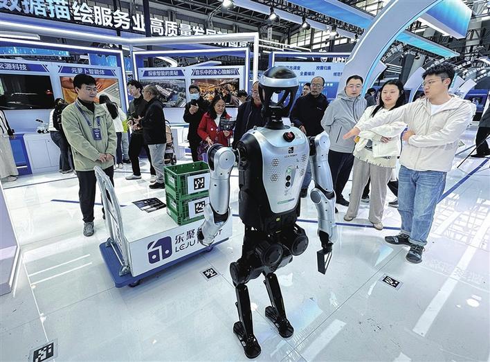 第十五届全运会开幕式上敲响青铜乐器,机器人“夸父”传递全运会火炬;进博会里上演机器人格斗擂台赛……人形机器人已 从科幻作品逐渐走入人们生活。图为2025中国国际数字经济博览会上的“夸父”机器人。 新华社发