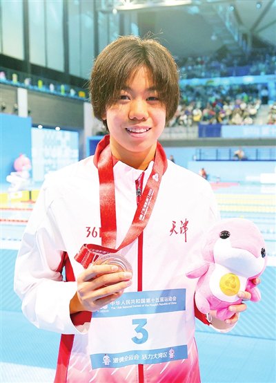 报名参加4项比赛的天津小将杨偌熙,昨天终于站上了领奖台,她在女子200米仰泳决赛中,以2分08秒78夺得铜牌,湖北队的彭旭玮和浙江队的柳雅欣以2分07秒74和2分08秒50分获冠、亚军。赛后,14岁的杨偌熙表示,这个结果在意料之中。