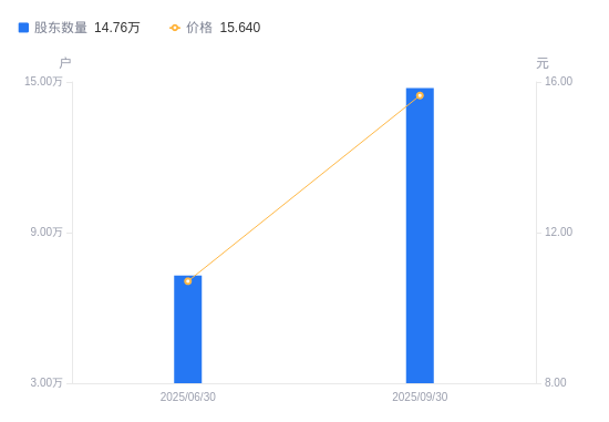 4月17日消息,数据显示,截至2025年12月31日,A股股东总户数为16.44万户,较上期(2025年9月30日)增加1.68万户,增幅11.40%。公司最新A股总股本为18.67亿股,其中流通A股18.67亿股,户均持有流通A股数量为1.14万股,较上期减少1294.13股,降幅10.23%;户均持流通A股市值17.85万元,较上期减少1.93万元,降幅9.77%。