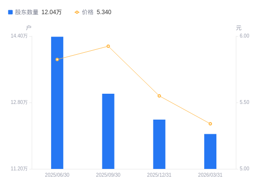 4月17日消息,数据显示,截至2025年12月31日,A股股东总户数为12.39万户,较上期(2025年9月30日)减少6227户,降幅4.79%。公司最新A股总股本为44.98亿股,其中流通A股44.98亿股,户均持有流通A股数量为3.63万股,较上期增加1737.81股,增幅5.03%;户均持流通A股市值20.15万元,较上期减少3285.09元,降幅1.60%。