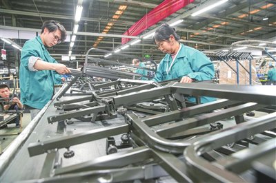 连日来,在我市的浙江乐欣户外用品有限公司生产车间,工人正在赶制订单产品。眼下,户外经济持续升温,渔具、推车、帐篷等产品迎来产销旺季。该企业产品涵盖各类户外用品,远销40多个国家和地区。记者 王树成 摄