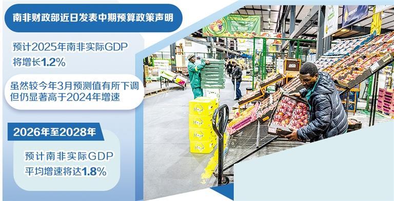 近日,南非财政部长埃诺赫·戈东瓜纳在国民议会发表中期预算政策声明指出,预计2025年南非实际国内生产总值(GDP)将增长1.2%,虽然较今年3月预测值有所下调,但仍显著高于2024年增速。2026年至2028年,预计南非实际GDP平均增速将达1.8%。