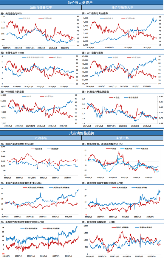 1. 美国:炼厂利润连续第二周上涨,受库存持续下降推动,美国墨西哥湾(USGC)复杂炼厂利润周涨约10%,达到年内高位。汽油与柴油库存连续第五周下降,柴油库存五周共降1,200万桶,为近五年同期最低水平。巴西减少俄油柴油进口,转向从美国采购,带动美方柴油出口强劲。感恩节出行高峰临近,汽油与航煤需求同步上升,支撑短期利润维持高位。