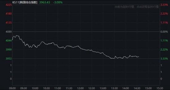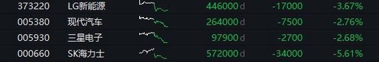 韩国股市KOSPI指数跌超3%。权重股中,LG新能源、三星电子、SK海力士等纷纷下跌。