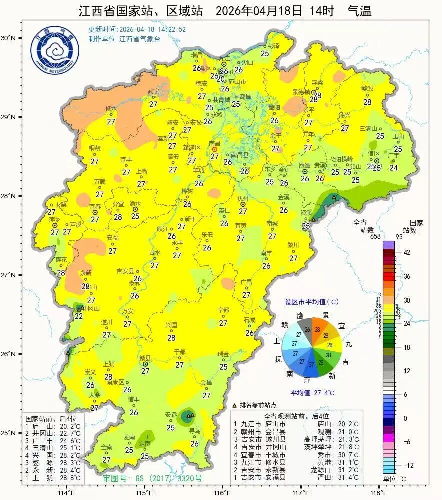上犹更是达到了28.8℃