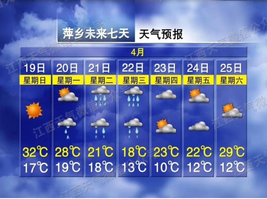 赣南有阵雨转中雨或雷雨