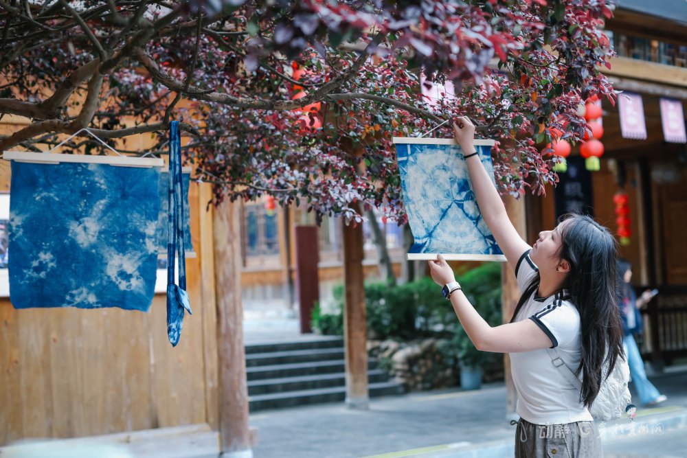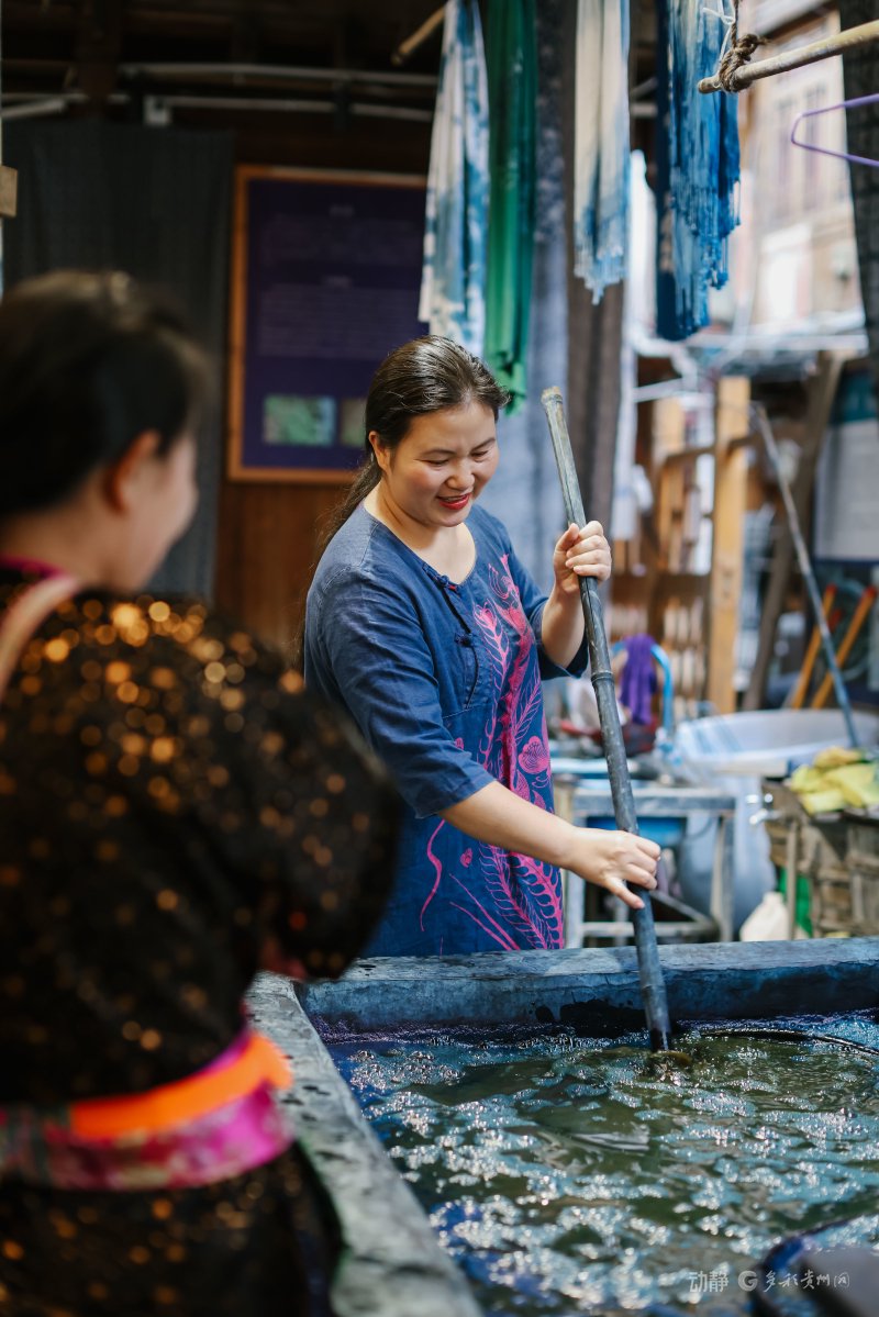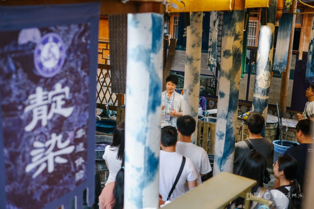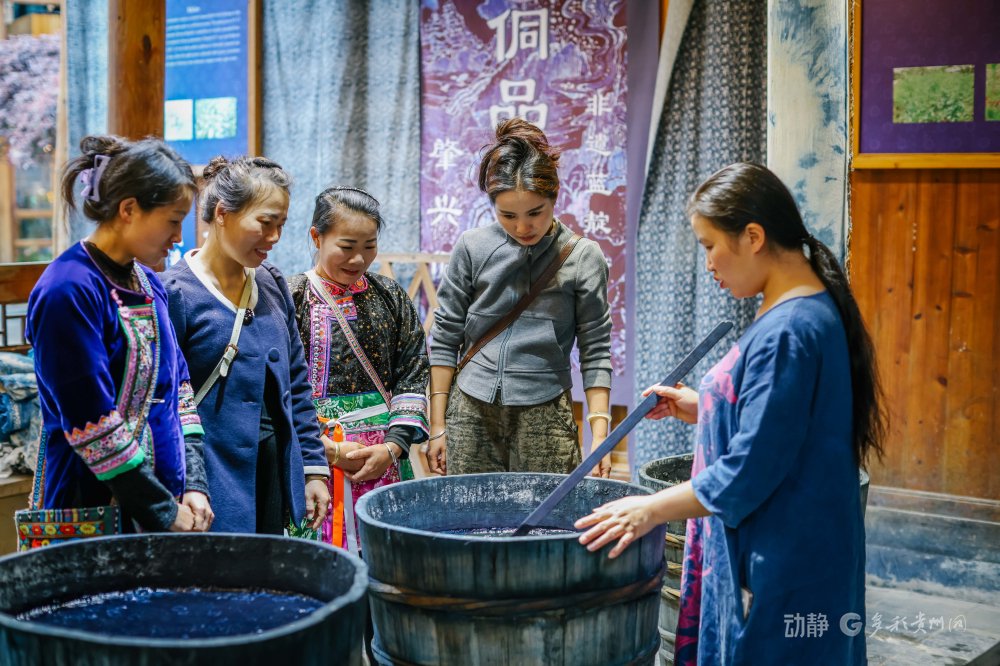 蓝靛靛染是侗族传承上千年前的手工艺,人们利用蓝靛植物提取染料制作精美的布料和衣物。如今,这一“土特产”变成了游客来到肇兴侗寨可以深度体验的旅游商品。