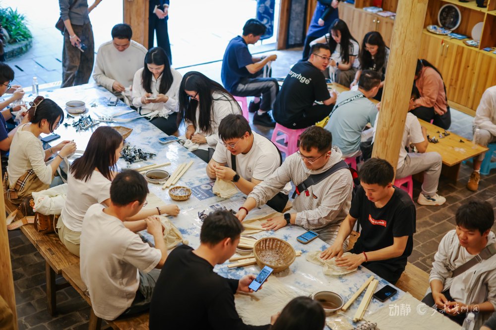 游客在侗品源体验馆学习蓝靛靛染技艺