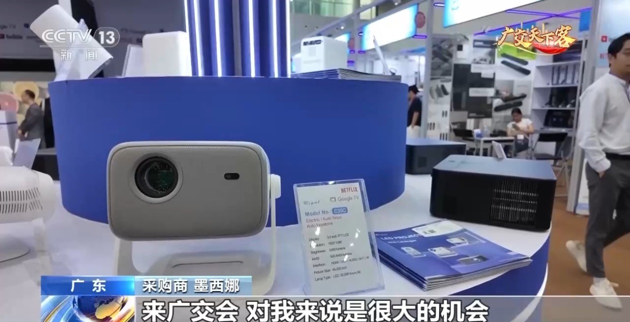 采购商 墨西娜:这个投影仪,真棒!我们准备买,中国的产品质量很好,来广交会对我来说是很大的机会,能够找到很厉害、很有意思的产品。